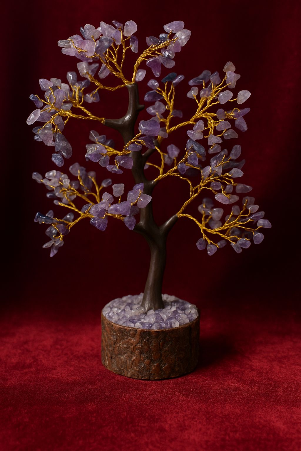 Amethyst, the stone of spiritual protection and enlightenment, is represented beautifully in this Amethyst Tree with 300 crystal points. This tree not only enhances spiritual awareness but also promotes emotional healing and mental clarity. Amethyst’s calming energy helps relieve stress, soothe anxiety, and create a peaceful atmosphere. Perfect for meditation areas or anyone seeking inner peace and higher consciousness.