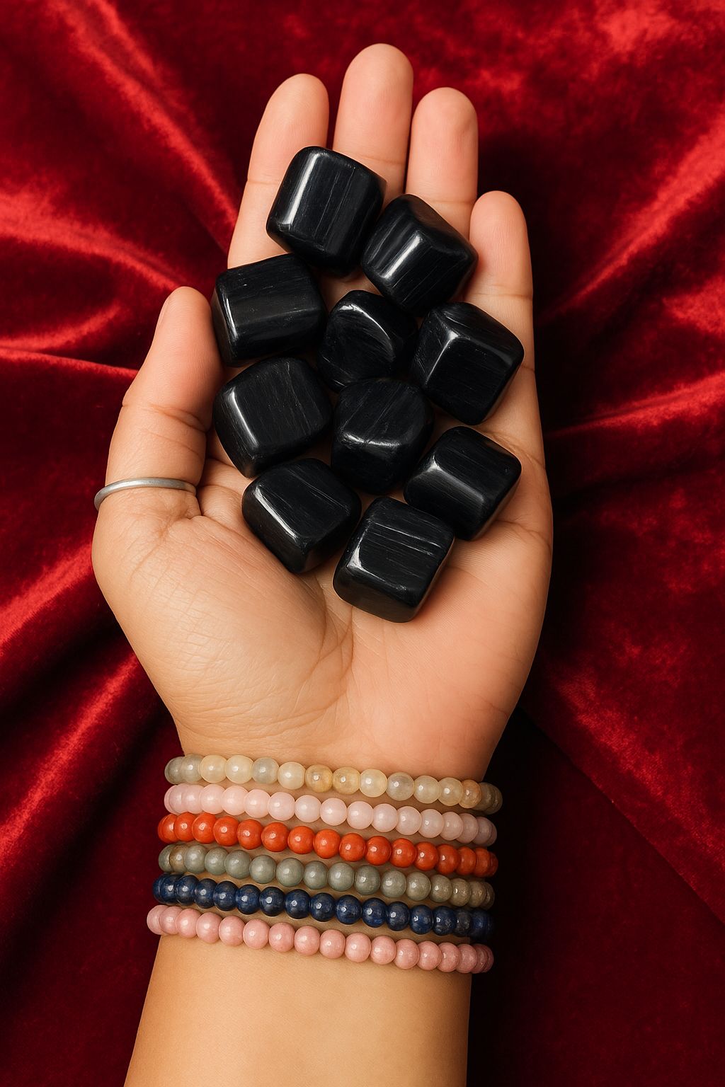 Black Tourmaline is one of the most protective stones, renowned for its ability to ground and deflect negative energies. It works to purify your environment, ensuring a safe space filled with positive vibrations. Carry Black Tourmaline to protect yourself from electromagnetic radiation, negative thoughts, or any form of emotional stress.