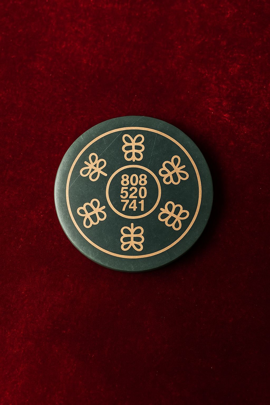Be the first to review “Green Jade Round Coaster with wealth zibu sign”