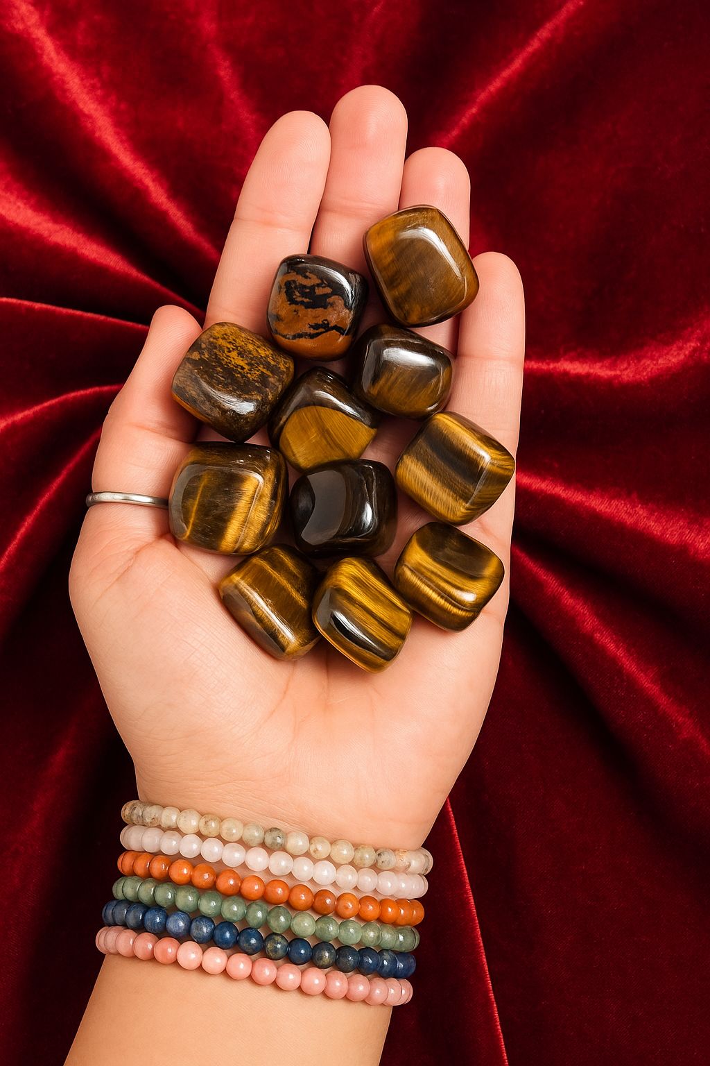 Tiger Eye is a stone of power, courage, and manifestation. It brings balance to your energy, helping to boost confidence and mental clarity while warding off negative influences. Its golden-brown hues support the Root and Solar Plexus chakras, enhancing your personal power and helping you stay grounded while moving forward with your goals.